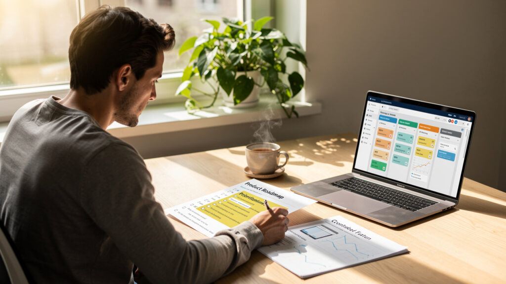 - A prioritized feature list created with MoSCoW and RICE methods that separates must-haves from nice-to-haves. This keeps the MVP small enough to launch fast while still testing the main bet. It also provides a calm way to handle new ideas because they can be scored and queued instead of argued.